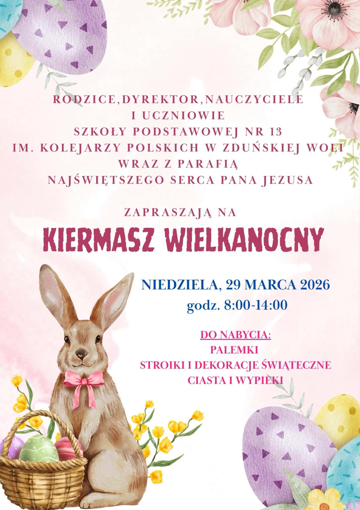 Serdecznie zapraszamy na kiermasz świąteczny w niedzielę 29 maja 2026 r. w godz. 8.00 - 14.00.