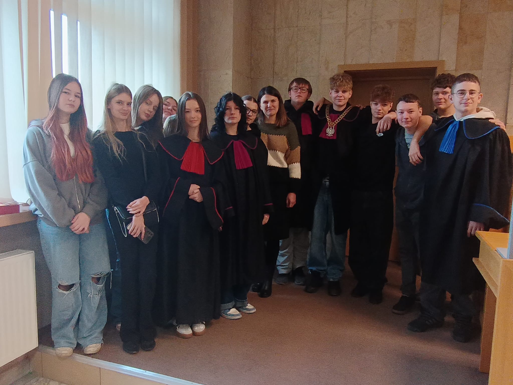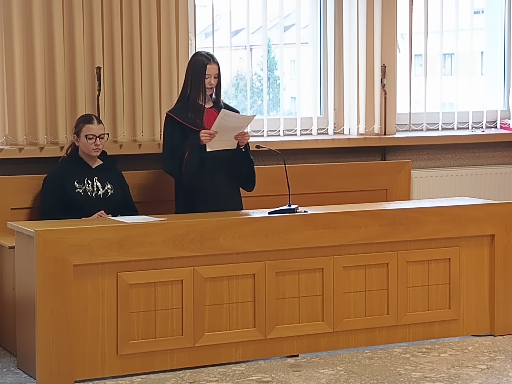 Uczniowie klas 8 byli na wycieczce zawodoznawczej w Sądzie Rejonowym w Zduńskiej Woli. Lekcja w sądzie to połączenie edukacji prawnej i symulacji rozprawy sądowej. Uczniowie dowiedzieli się o kodeksach obowiązujących w polskim prawie, zawodach w sądownictwie, a ochotnicy mieli okazję wcielić się w rolę prokuratura, sędziego, adwokata, oskarżonego oraz świadka.