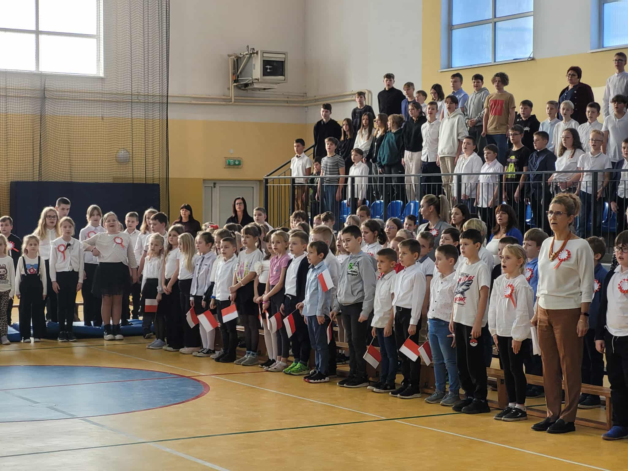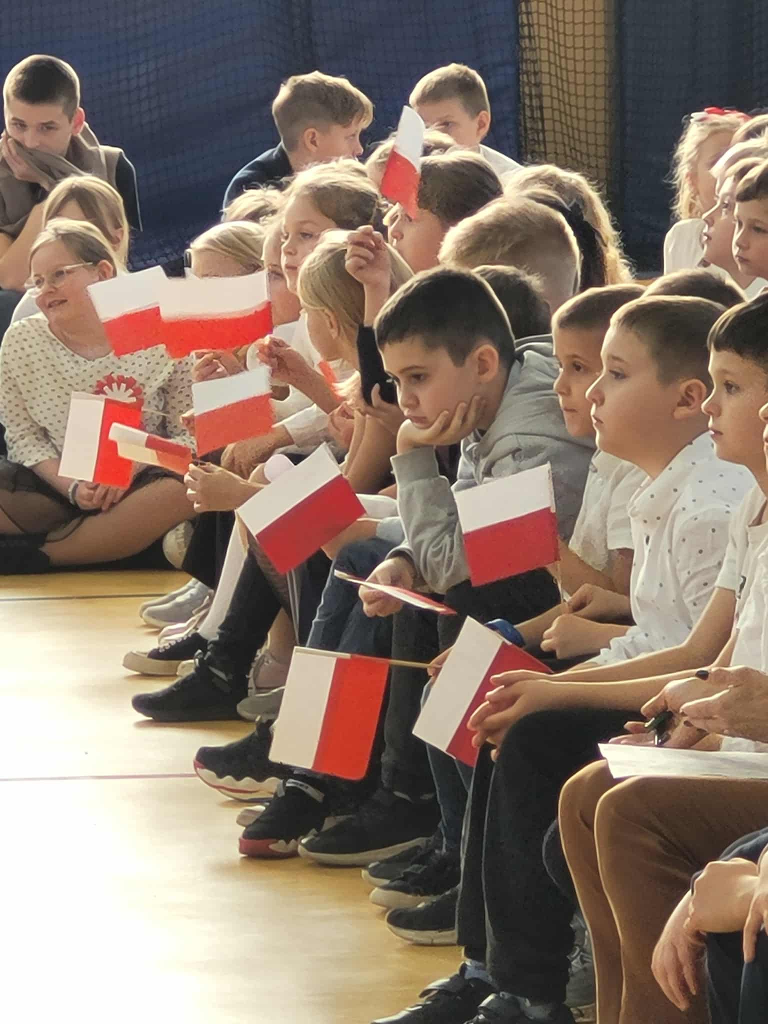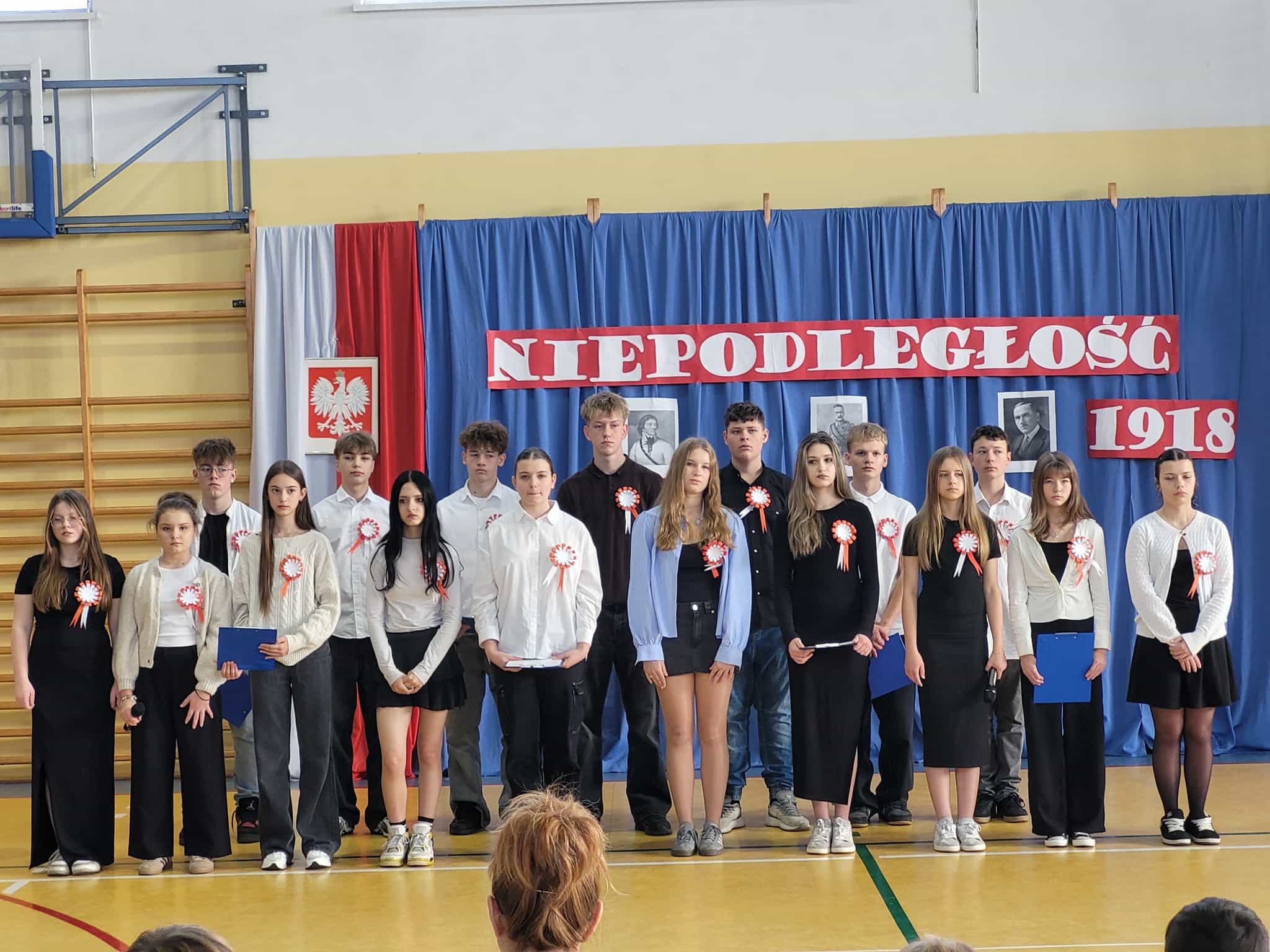 W piątek, 7 listopada odbyła się, przygotowana przez klasę 8b, uroczysta akademia z okazji zbliżającej się rocznicy odzyskania przez Polskę niepodległości. O godzinie 11.11 wszyscy zebrani na sali wzięli udział w ogólnopolskiej akcji "Niepodległa do Hymnu".