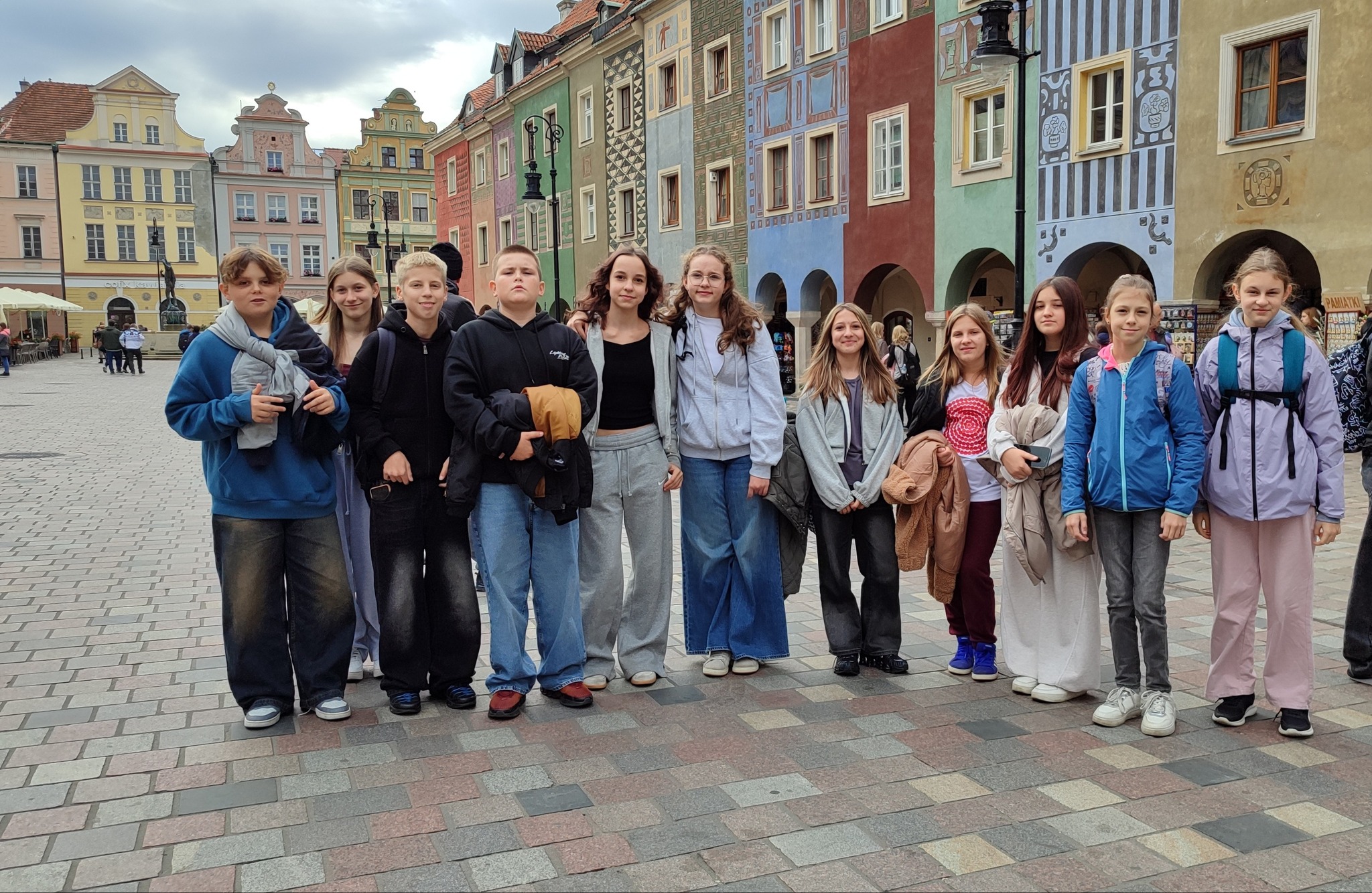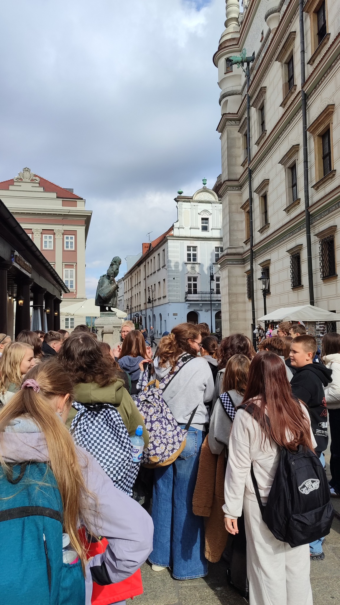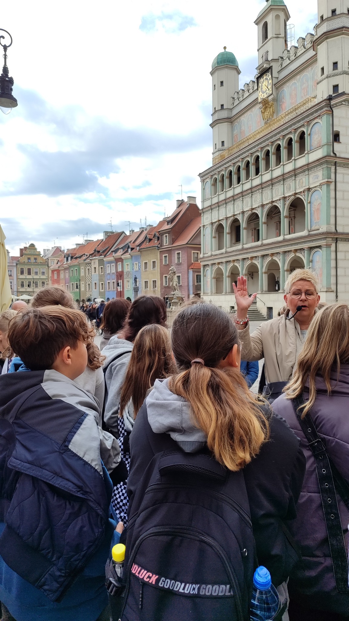 Klasy 6a, 7b i 8a w Poznaniu. Uczniowie spacerowali po Ostrowie Tumskim, zobaczyli poznańskie koziołki na Starym Rynku, odwiedzili Rogalowe Muzeum Poznania i przeszli się kładką wśród korony drzew w Dolinie Szklarki!