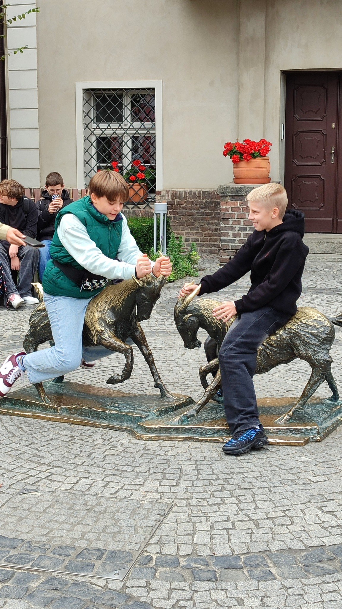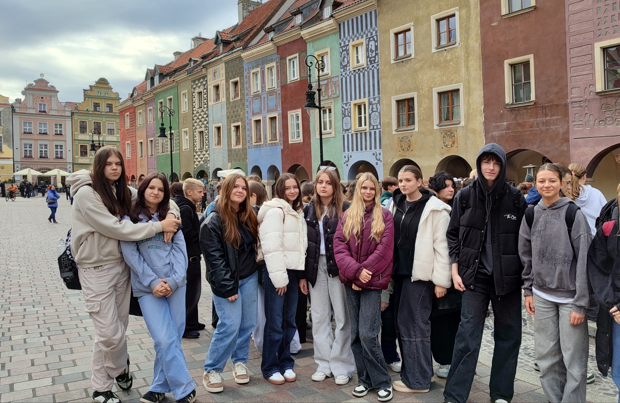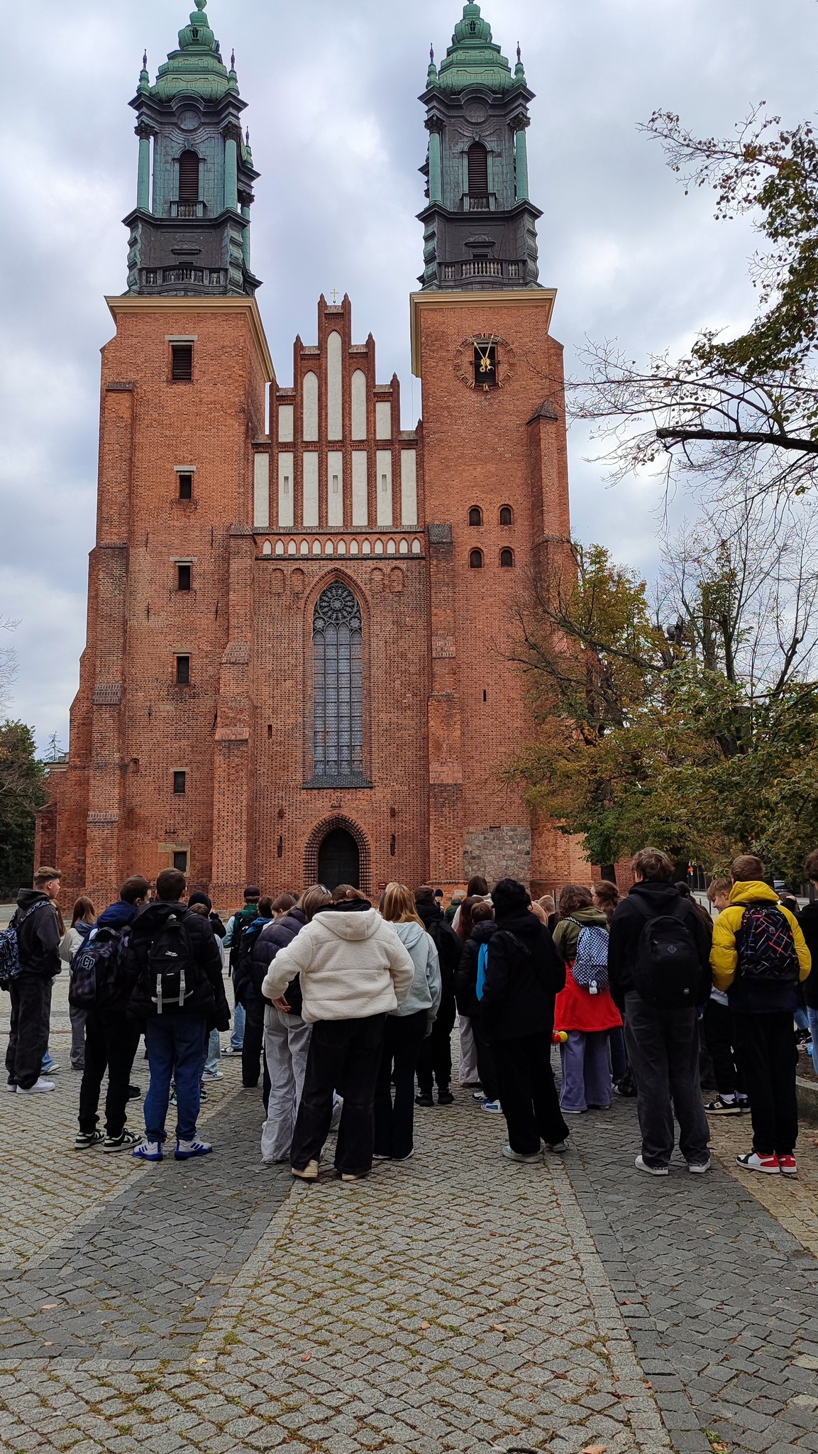 Klasy 6a, 7b i 8a w Poznaniu. Uczniowie spacerowali po Ostrowie Tumskim, zobaczyli poznańskie koziołki na Starym Rynku, odwiedzili Rogalowe Muzeum Poznania i przeszli się kładką wśród korony drzew w Dolinie Szklarki!