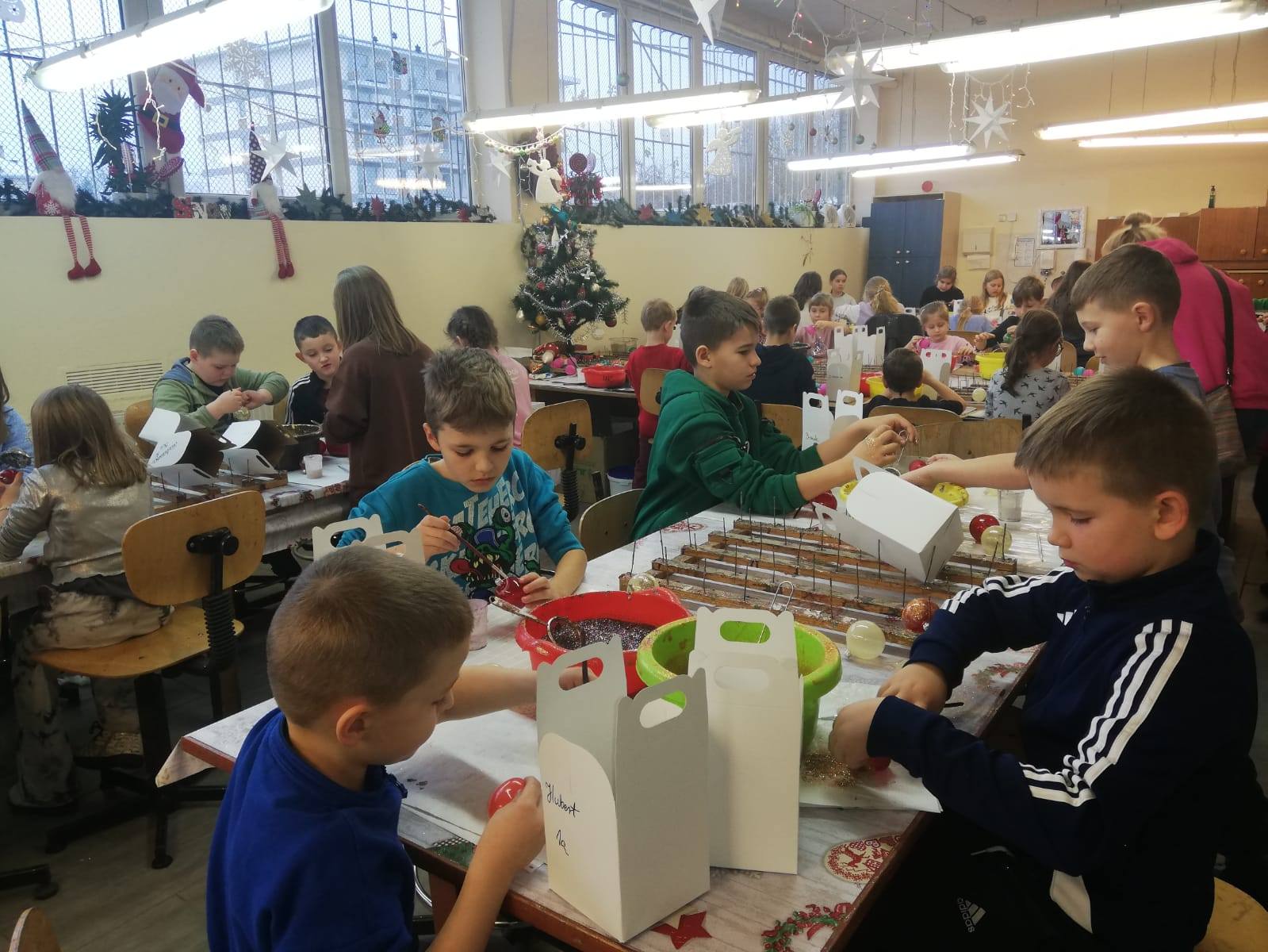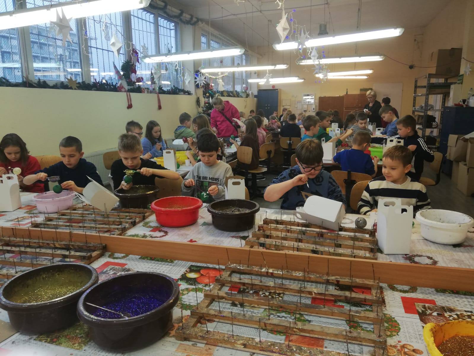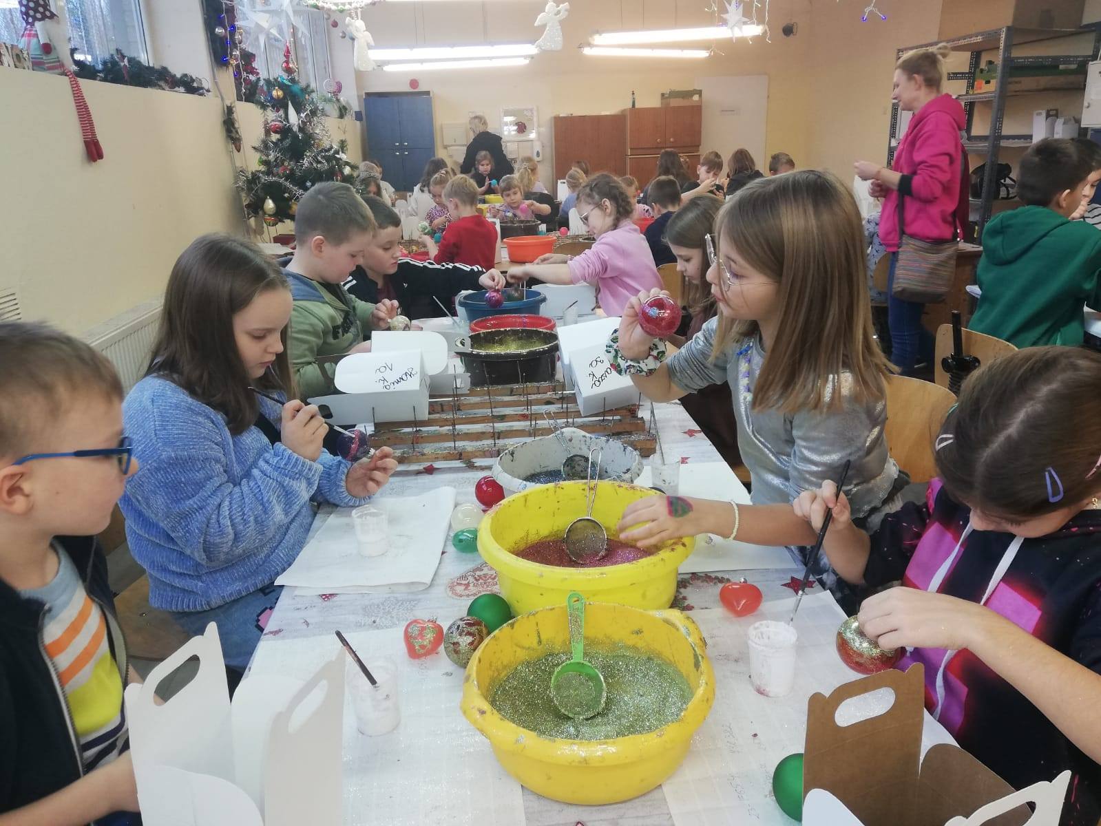 Klasy 3a, 3b i 1a miały okazję zobaczyć z bliska jak powstają bombki choinkowe. Podczas wizyty w fabryce bombek w Piotrkowie Trybunalskim uczniowie zostali zapoznani z procesem powstawania i dekorowania bombek. Największą frajdą dla uczniów było samodzielne dekorowanie bombek, które potem mogli zabrać do domu.